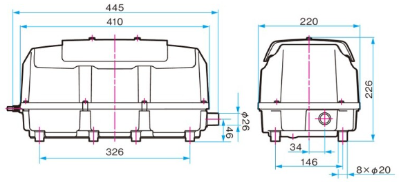 | LA-150F | φ26 | 150 | 20.0 | 134 | AC100 | 50/60 | 445×220×226 | 13.5 |